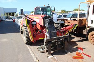 2013 MANITOU TELEHANDLER MT-X1440, RED, AWD, AUTO, P/S, A/C, DIESEL (PERKINS) (REG#UNLIC) ODO# 11,556 HRS SHOWING ON CLOCK, S/N: 925687, RATED AT 4000 kg LIFT (STARTS & RUNS) (TILT CYLINDER LEAKING, FRONT AUX PIPES CUT OFF, FOR CARRIER BENT, KING PINS V/J, CONTROL VALVE LEAKING) FL# BEC 381, KEY# 89 (MP77#5824) (OMR-00081)