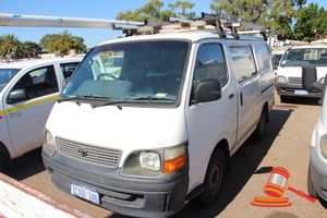 12/1998 TOYOTA HIACE VAN, WHITE, 4X2, MANUAL, P/S, A/C, DIESEL, REG#1GDC635 LIC: 6.2.19 EXPIRED) ODO# 269,648 KMS SHOWING ON CLOCK, VIN#JT721LHB300188698, ENG# 3L2779, ROOF RACK, (NON RUNNER) KEY#184 (W