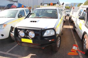 12/2010 TOYOTA HILUX TRAY TOP, WHITE, 4X2, MANUAL, P/S, A/C, UNLEADED, (REG#UNLIC) ODO# 111,730 KMS SHOWING ON CLOCK, VIN# MR0EZ12G104010574, TOWBAR, BEACON, REAR SPOTLIGHTS, TOOLCHEST, (CRACK IN FRONT WINDSCREEN) FL# FI44, PRDA/KS/FI44, KEY#409 (W7893)