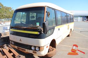 2005 MITSUBISHI ROSA BUS, WHITE, 4X2, MANUAL, P/S, A/C, DIESEL, (REG#UNLIC) ODO# UNKNOWN, VIN# JLFBE649J0B001059, TOW HITCH, LICENSED TO CARRY 24 PASSENGERS, (PARTS OF ENGINE MISSING, DISMANTLED, NON RUNNER) FL# CC2030, B5975177, NO KEY (W7829)
