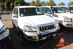 10/2008 TOYOTA PRADO WAGON, WHITE, 4X4, AUTO, P/S, A/C, D4D, (REG#UNLIC) ODO# 233,201 KMS SHOWING ON CLOCK, VIN# JTEBZ29200190899, ROLLBAR, CARGO BARRIER, TOWBAR, SPARE TYRE, FL# MPS1, PRDA KS/MPS1, KEY# V (W7899)