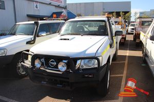 1/2009 NISSAN PATROL SINGLE CAB UTE, WHITE, 4X4, MANUAL, P/S, A/C, 3 LTR TD, REG# UNLIC, VIN# JNIUELY61A0501913, ODO# 81,921 KMS SHOWING ON CLOCK, ROO BAR, TOW BAR, SNORKEL, SPOTLIGHTS, FL# PL65 (W