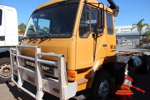 1992 MITSUBISHI CAB CHASSIS, MUSTARD, 8 X 4, MANUAL, P/S, A/C, DIESEL, REG# UNLIC, ODO# 492,623 KMS SHOWING ON CLOCK, VIN# 6F6SA14TNT020065, ENG# 6D22201201, ALUMINIUM BULLBAR, BEACON, ROPS, FL# WC03, KEY# 73 (W7508)