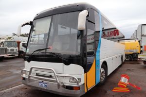 1990 MITSUBISHI BUSTYP , WHITE, 4X2, MANUAL, P/S, A/C, DIESEL, REG#1GKQ344 LIC: 7.6.19, ODO# 357,856 KMS SHOWING ON CLOCK, VIN# 6U9000MS725S88830, ENG# 8DC9357017, ALUMINIUM BULLBAR, LIGHT BAR, 45 PASSENGER SEATS, STORAGE/LUGGAGE COMPARTMENTS, 2 TV SCREENS, AIRBAGS, BELTED SEATS, KEY# 111 (W8064)