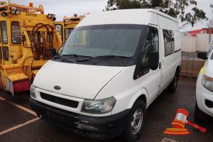 02/2006 FORD TRANSIT 2 VAN, WHITE, 4X2, MANUAL, P/S, A/C, DIESEL, (REG#UNLIC) ODO# 149,970 KMS SHOWING ON CLOCK, VIN# WF0LXXBDFL5E89296, REVERSE CAMERA, ALPINE SPEAKERS, INSIDE RACKING, AMP SUBWOOFER, KEY#168 (W7940)