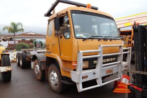 1992 MITSUBISHI CAB CHASSIS, MUSTARD, 8 X 4, MANUAL, P/S, A/C, DIESEL, REG# UNLIC, ODO# 492,623 KMS SHOWING ON CLOCK, VIN# 6F6SA14TNT020065, ENG# 6D22201201, ALUMINIUM BULLBAR, BEACON, ROPS, FL# WC03, KEY# 73 (W7508)