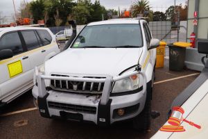 12/2010 TOYOTA HILUX 150 SERIES DUAL CAB, WHITE, 4X4, AUTO, P/S, A/C, D4D, (REG#UNLIC) ODO# 304,835 KMS SHOWING ON CLOCK, VIN# MR0FZ22G901044712, BULLBAR, WORKLIGHTS, TOOLBOXES X 2, (MISSING 4WD GEAR SHIFT COVER, DAMAGE DRIVERS DOOR & FRONT GUARD, TOP OF SNORKEL MISSING) FL# R25, KEY# 82 (W8110)