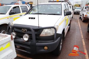 2008 TOYOTA HI-LUX 150 SERIES DUAL CAB, WHITE, 4X4, MANUAL, P/S, A/C, D4D, (REG#UNLIC) ODO# 196,761 KMS SHOWING ON CLOCK, VIN# MR0FZ22G401168872, BULLBAR, SPOTLIGHTS, TOWBAR, BEACON, INTERNAL ROLLBAR (DAMAGED TOOLBOX) FL# CAL32, KEY#37 (W8123)