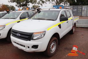 2013 FORD RANGER DUAL CAB, WHITE, 4X4, AUTO, P/S, A/C, 3.2 TURBO DIESEL, (REG#UNLIC) ODO# 51,701 KMS SHOWING ON CLOCK, VIN# MNAUMEF50DW186562, WORKLIGHTS, TOOLBOX, TOWBAR, SPARE TYRE (PASSENGER SIDE REAR DOOR DOES NOT CLOSE) FL# LV4524, KEY# 214 (W8117)