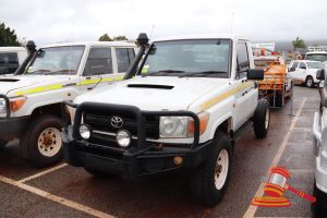 2010 TOYOTA LANDCRUISER TRAY TOP, WHITE, 4X4, MANUAL, P/S, A/C, V8 DIESEL, (REG#UNLIC) ODO# 216,777 KMS SHOWING ON CLOCK, VIN# JTELV71J400019287, 1VD0107561, BULLBAR, SPOTLIGHTS, SCRUB BARS, SIDE STEPS, SNORKEL, BEACON, FLAG POLE, SIREN, TRAY ROPS, 2 X TRAY MOUNTED TOOLBOXES, DAVEY PUMP, YANMAR DIESEL MOTOR, QUENCHMASTER FIRE FIGHTING FOAM PROPORTIONING SYSTEM, MOUNTED WATER TANK, HAND PUMP, FIRE REEL & HOSES, WORKLIGHTS, FIRE FIGHTING PIPING & OUTLETS, FL# 03P5515, S44#RITM2424795, KEY# 93 (W8083)