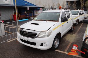 2011 TOYOTA HI-LUX 150 SERIES DUAL CAB, WHITE, 4X2, MANUAL, P/S, A/C, D4D, (REG#UNLIC) ODO# 97,053 KMS SHOWING ON CLOCK, VIN# MR0EZ12G804011432, WORKLIGHTS, TOOLBOX, TOWBAR, BEACON, SPARE TYRE, FL# RSM27, KEY# 14 (W8141)