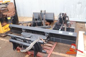 7 PIECE EARTHMOVING EQUIPMENT CONSISTING OF; MCCORMACK GRADER BLADE 2.7m, 900mm AUGER, 600mm AUGER, DIGGA HYDRAULIC POST HOLE BORER, CRANE JIB, SAND BUCKET 1.3m WIDE, LIFT BAR