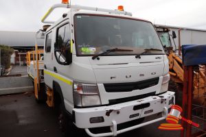 2011 MITSUBISHI FUSO/CANTER DUAL CAB, WHITE, 4X4, MANUAL, P/S, A/C, DIESEL, (REG#UNLIC) ODO# ??? VIN# JLFFGB71E0KJ00020, TOOLBOX, TOWBAR, ROPS, STEPS BUILT INTO TRAY (NON RUNNER, DASH PULL APART, ENGINE ISSUES, NO BACK SEAT) FL#LT1057, KEY# ???? (W8170)