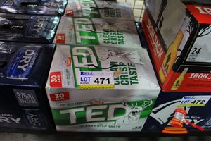 2 x CARTONS OF TOOHEYS TED (30 X375ml) CANS 4.4% ALC/VOL. 1 x CARTON OF IRON JACK (24 x 330ML) BOTTLES 4.2% ALC/VOL
