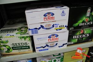 12 x 330ml BOTTLES OF PERONI 5.1% ALC / VOL; 6 x 355ml BOTTLES OF PURE BLOND 4.2% ALC / VOL