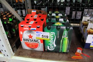 12 x 330ml BOTTLES OF BINTANG 4.7% ALC / VOL; 18 x 330ml BOTTLES OF CARLSBERG 4.8% ALC / VOL (BINTANG 6 PACK PACKAGING BROKEN)