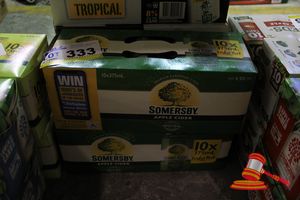 1 x ORCHARD CRUSH APPLE CIDER JAMES SQUIRE (24 x 345ML) BOTTLES 4.8% ALC/VOL. 1 x SOMMERSBY LOW CARB SEMI DRY (24 x 330ML) BOTTLES 4.0% ALC/VOL