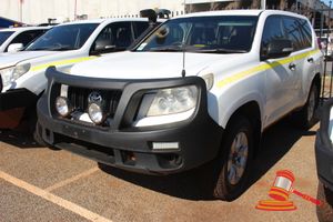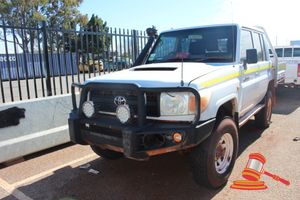2010 TOYOTA LANDCRUISER DUAL CAB, WHITE, 4x4, MANUAL, P/S, A/C, V8 TURBO DIESEL, (REG#UNLIC) ODO# 391,345 KMS SHOWING ON CLOCK, VIN# JTEEV73J300005208, ENG# 1VD0105440, BULLBAR, SPOTLIGHTS, TRAY MOUNTED TOOLBOX, TOWBAR WITH PARROT HITCH (DRIVER'S INTERIOR DOOR DAMAGE) FL# 03H1036, S44#RITM2268686, KEY#144 (W8412)