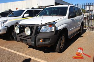 2010 TOYOTA PRADO GX 150 SERIES, WAGON, WHITE, 4X4, MANUAL, P/S, A/C, D4D, (REG#UNLIC) ODO# 318,855 KMS SHOWING ON CLOCK, VIN# JTEBH3FJ80K017471, ENG# 1KD2000221, BULLBAR, SPOTLIGHTS, INTERNAL CARGO BARRIER, SPARE TYRE, TOWBAR (NO HITCH) BEACON, LIGHTBAR (PART OF GRILL BODYKIT MISSING) FL# 03D75, S44#RITM3295785, KEY#43 (W8395)