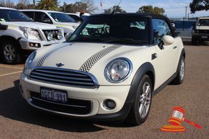 2013 BMW MINI CONVERTIBLE, WHITE, 4x2, MANUAL, P/S, A/C, PETROL, REG#1GCD991 LIC: 21.2.20, ODO# 160,743 KMS SHOWING ON CLOCK, VIN# WMWZN32000T589523, ENG# A966J5AA, LEATHER & CLOTH INTERIOR, SOFT TOP CONVERTIBLE, ELECTRIC WINDOWS, KEY#36 (W8476)