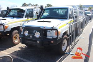 2010 TOYOTA LANDCRUISER SINGLE CAB/TRAYTOP, WHITE, 4x4, MANUAL, P/S, A/C, V8 TURBO DIESEL, (REG#UNLIC) ODO# 178,812 KMS SHOWING ON CLOCK, VIN# JTELV71JX00016488, ENG# 1VD0089011, BULLBAR, SPOTLIGHTS, TRAY MOUNTED TOOLBOX, UNDER TRAY WATER TANK, DUAL TYRE CARRIER BUILT INTO TRAY, TOWBAR (FRONT RIGHT HAND FENDER DAMAGE NEAR DOOR) FL# 03H3584, KEY#149 (W8433)