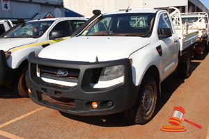 2012 FORD RANGER SINGLE CAB/TRAY TOP, WHITE, 4x4, AUTO, P/S, A/C, DIESEL, (REG#UNLIC) ODO# 142,469 KMS SHOWING ON CLOCK, VIN# MNAUMAF50CW161380, ENG# P5AT1040244, SMARTBAR, TRAY MOUNTED TOOLBOX, TOWBAR (NO HITHC) SPARE TYRE, WORKLIGHT (NOISY BELT ON ENGINE, RIGHT HAND DOOR HANDLE MISSING) FL# 03P6614, S44#RITM3041551, KEY# 57 (W8400)