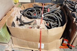 1 X CAGE, CONTAINS APPROX 6 X 1" X 20M LENGTHS OF AIR/ WATER HOSE, APPROX 3 X 1/2" X 20M LENGTHS OF AIR HOSE, 2 X HYDRAULIC HOSES & 12 X TWIN 3/8" AIR HOSE. (MP77#6403)