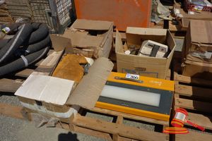 PALLET CONTAINS QTY OF VARIOUS ELECTRICAL & PIPING INCLUDES APPROX 4 X ROLLS OF ELECTRICAL CABLE, FUSE BOXES 415V PORTABLE RCDS, LIGHTS, FLOUROS & 2 X ROLLS OF RETIC PIPING
