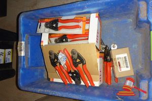 CAGE CONTAINING VARIOUS ELECTRICAL CONSUMABLES, INCLUDES QTY OF VARIOUS SIZE CABAC CRIMP CABLE LUGS AND CONNECTORS (OMR 00081, MP77 5824)