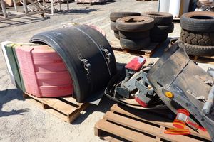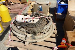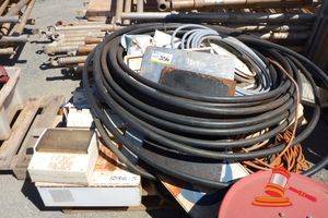 MIXED, QTY OF ELCTRICAL LEADS, 1 X ACCUMULATOR AND 2 X 2" RUBBER AIR/ WATER HOSES WITH MINSUP ENDS