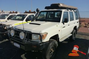 6/2011 TOYOTA LADNCRUISER 76SER WAGON WHITE 4X4 MANUAL P/S, A/C, V8 TURBO DIESEL, BULLBAR, SPOTLIGHTS, SNORKEL, SIDE STEPS, WORKLIGHTS, TOW ASSEMBLY, REAR MOUNTED SLIDING DRAWERS, CARGO BARRIER, DUAL SPARE WHEEL CARRIER, REG NO - (UNLIC) ODO - 190,687KMS SHOWING, ENGINE NO - 1VD0120921, VIN NO - JTEEV73J800006077 (FL#03H5280) (S44#RITM3235911) (DR#64465) (KS#3274)