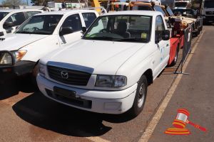 2005 MAZDA SINGLE CAB, WHITE, 4x2, MANUAL, P/S, A/C, 4 CYL PETROL (REG#UNLIC) ODO# 63,081 KMS SHOWING ON CLOCK, VIN# MMOUNY06200401200, ALUMINIUM WATER TANK, HONDA GX 160 PETROL MOTOR WITH DAVEY PUMP, HOSE & REEL (NO PASSENGER SEAT) KEY#49 (W8505)