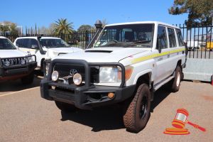 2010 TOYOTA LANDCRUISER WAGON, WHITE, 4x4, MANUAL, P/S, A/C, V8 TURBO DIESEL (REG#UNLIC) ODO# 284,851 KMS SHOWING ON CLOCK, VIN# JTEEV73J900004743, ENG#1VD0096722, BULLBAR, SPOTLIGHTS, INTERNAL CARGO BARRIER, TOWBAR WITH PARROT HITCH (DRIVER'S DOOR DAMAGED & R/H FENDER DAMAGE) FL# 03R269, S44#RITM3397175, KEY# 174 (W8418)