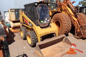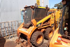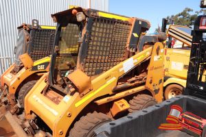 2013 CATERPILLAR 226B3 SKID STEER, YELLOW, AWD, AUTO, P/S, DIESEL, ODO# 3498 HRS SHOWING, VIN# CAT0226BTSNA00861, WORKLIGHTS, BEACONS, REVERSING CAMERA, WHEELCHOCKS (FRONT DOOR NOT CONNECTED, AREAS OF SURFACE RUST, UNDER SEAT GUARD REMOVED, HANDLE BODYKIT REMOVED, CONDITION UNKNOWN, NO KEY SUPPLIED) FL# SVD24