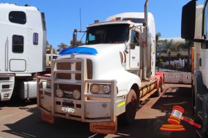2000 KENWORTH T604 PRIME MOVER, WHITE, 6X4, MANUAL, P/S, A/C, DIESEL, REG# 1DGZ229 LIC: 8.11.19, ODO# 83,381 KMS SHOWING ON CLOCK, VIN# 6F5000000YA420545, ENG# 14006545, SLEEPER CAB, TURNTABLE, BULLBAR, SPOTLIGHTS, FL# DGA24, KEY#175 (W8343)