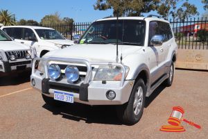 2004 MITSUBISHI PAJERO WAGON, WHITE, 4x4, AUTO, P/S, A/C, DIESEL, REG#1GUD373 LIC:15.5.20, ODO# 240,887 KMS SHOWING ON CLOCK, VIN#JMFLYV78W5J001461, ENG#4M41GQ5255, BULLBAR, SPOTLIGHTS, TOWBAR, ROOF RACKS, ALLOY RIMS, WEATHER SHIELDS, UHF RADIOS, SEAT COVERS, ROOF MOUNTED DVD PLAYER, SAT NAV, KEY#50 (W8519)