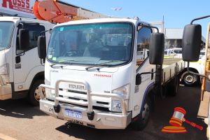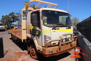 2010 ISUZU TRAY TOP, WHITE/SILVER, MANUAL, P/S, A/C, 4 CYL, REG#1DJO657 LIC: 6.10.19, ODO# 236,558 KMS SHOWING ON CLOCK, VIN# JAANPR75H87105216, ENG# 4HK1794406, CENTRAL LOCKING REMOTE (CRACK IN WINDSCREEN, CABIN TEMP CONTROL BUTTON MISSING) KEY#147 (W8479)