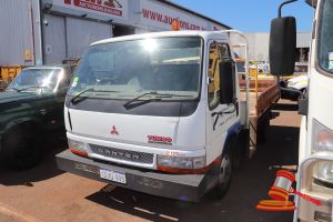 2004 MITSUB CANTER TRAY TOP, WHITE, 4x2, MANUAL, P/S, 4 CYL, REG#1DVU995 LIC: 30.10.19, ODO# 227,067 KMS SHOWING ON CLOCK, VIN# JLFFE639C0KJ40210, ENG# 4D34J94966, SURFACE RUST TRAY BODY, SIDE STEPS ONTO TRAY BODY, DRIVER'S SEAT RIPPED, KEY#78 (W8499)