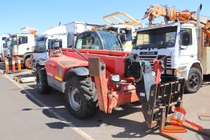 2006 MANITOU MSI25T FORK TRUCK, RED/BLACK, 4x4, AUTO, P/S, A/C, DIESEL (UNLIC) ODO#7,042 HRS SHOWING (SEAT HAS HOLE) S/N:220959, KEY#92