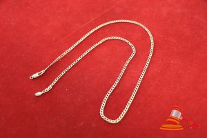 A STAMPED 9CT YELLOW GOLD, CHAIN NECKLET, BEVELLED CURB OF 56CMS LONG INCLUDING PARROT CLASP. & DETACHED FINAL & WEIGHS 7.8GRAMS. VALUE $220 (KFB/40)