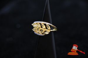 A STAMPED SILVER 10 x YELLOW STONE & 12 x DIAMOND 'LEAF' RING 3.6GRAMS VALUE $65 (ITEM#0038I)