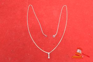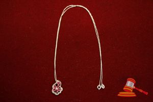 A STAMPED SILVER 6 x RUBY & 23 x DIAMOND PENDANT & FINE BOX CHAIN 3.8GRAMS VALUE $75 (ITEM#0038D)