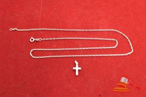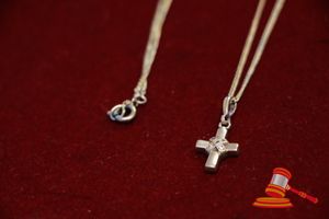 1 x 9CT YELLOW GOLD, 5 x DIAMOND SET CROSS PENDANT AND METAL CHAIN. WITH 5 x SINGLE CUT DIAMONDS OF 0.005CT EACH APPROX. ILLUSION/BEAD SET CENTRALLY IN THE HOLLOWED CROSS PENDANT. ITEM WEIGHS 1.3GRAMS. SALVAGE VALUE $40.00 (ITEM#0007)