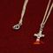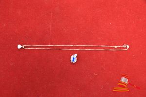 BAG CONTAINING 1 x PENDANT WITH WHITE STONE ON YELLOW METAL CHAIN & 1 x PENDANT WITH BLUE STONE & MULTI WHITE STONES