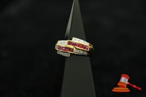 A STAMPED SILVER 12 x RUBY & 14 x DIAMOND RING 4.5GRAMS VALUE $45 (ITEM#0038A)