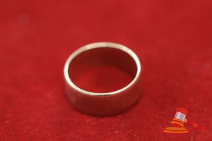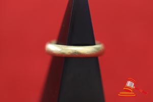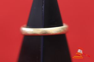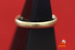 A STAMPED 18CT YELLOW GOLD, BAND RING, PLAIN & SLIGHTLY ROUNDED & WEIGHS 3.5GRAMS. VALUE $200 (KFB/20)