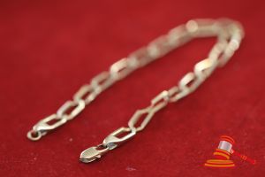 A STAMPED 9CT YELLOW GOLD, FANCY CHAIN BRACELET WITH HEXAGONAL LINKS ON 20CMS LONG INCLUDING DETACHED FINAL & WEIGHS 7.2GRAMS. VALUE $210 (KFB/29)