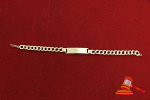 A STAMPED 18CT YELLOW GOLD, ID CHAIN BRACELET OF 23CMS INCLUDING S CLASP & WEIGHS 13.1GRAMS. VALUE $720 (KFB/18)