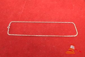 A STAMPED 9CT YELLOW GOLD, BEVELLED FIGARO CURB CHAIN NECKLET OF 42CMS LONG INCLUDING BOLT RING & 1 X METAL FINAL & WEIGHS 3.8GRAMS. VALUE $105 (KFB/35)