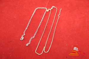 2 X STAMPED 9CT YELLOW GOLD, CHAIN NECKLETS. 1 X BOX LINK, BROKEN & 1 X SINGLE FIGARO, BROKEN FINALS. TOTAL WEIGHT OF 5.0GRAMS. VALUE $140 (KFB/42)